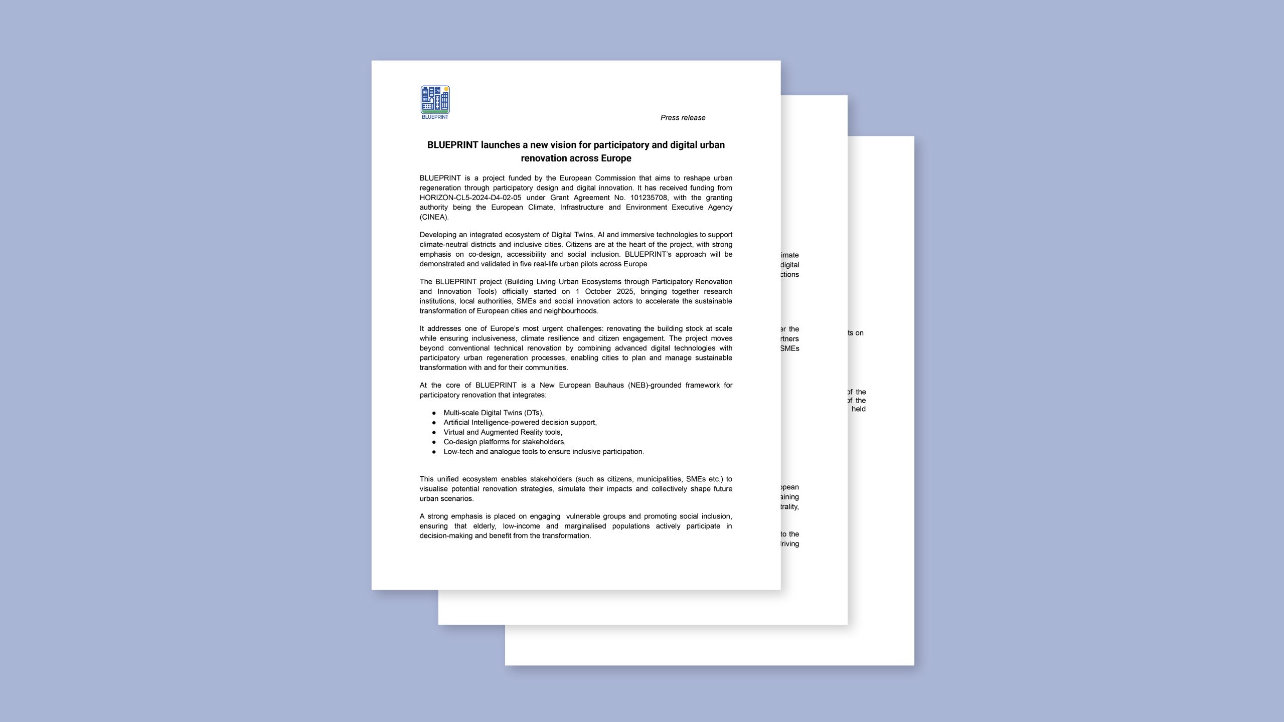 Discover BLUEPRINT, the new Horizon Europe project running until 2029. We are using digital solutions to foster participative design for buildings and neighborhoods in Ireland, France, Hungary, Greece, and Italy.